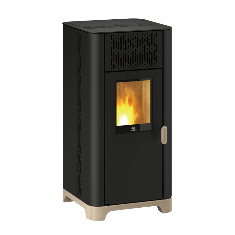 マットなブラック塗装が美しい、シンプルなボックスフォルム。特徴的なレインドロップデザインのスリットが、洗練された印象を与えます。漆黒の本体に、温かみのある天然木のレッグとハンドルが映え、室内のアクセントに。 着火部分は耐久性に優れたセラミック製。強制ファンにより、暖気を素早く室内全体に行き渡らせます。さらに、スマートフォンアプリで遠隔操作が可能。外出先からでも、帰宅前に運転を開始できます。